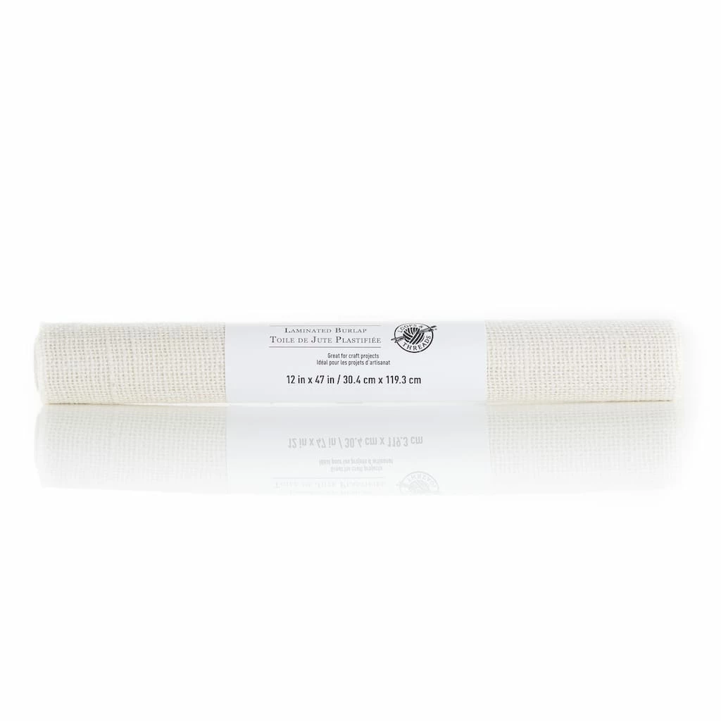 This laminated burlap is comprised of 100% jute. Use it for a variety of fun arts and crafts projects!