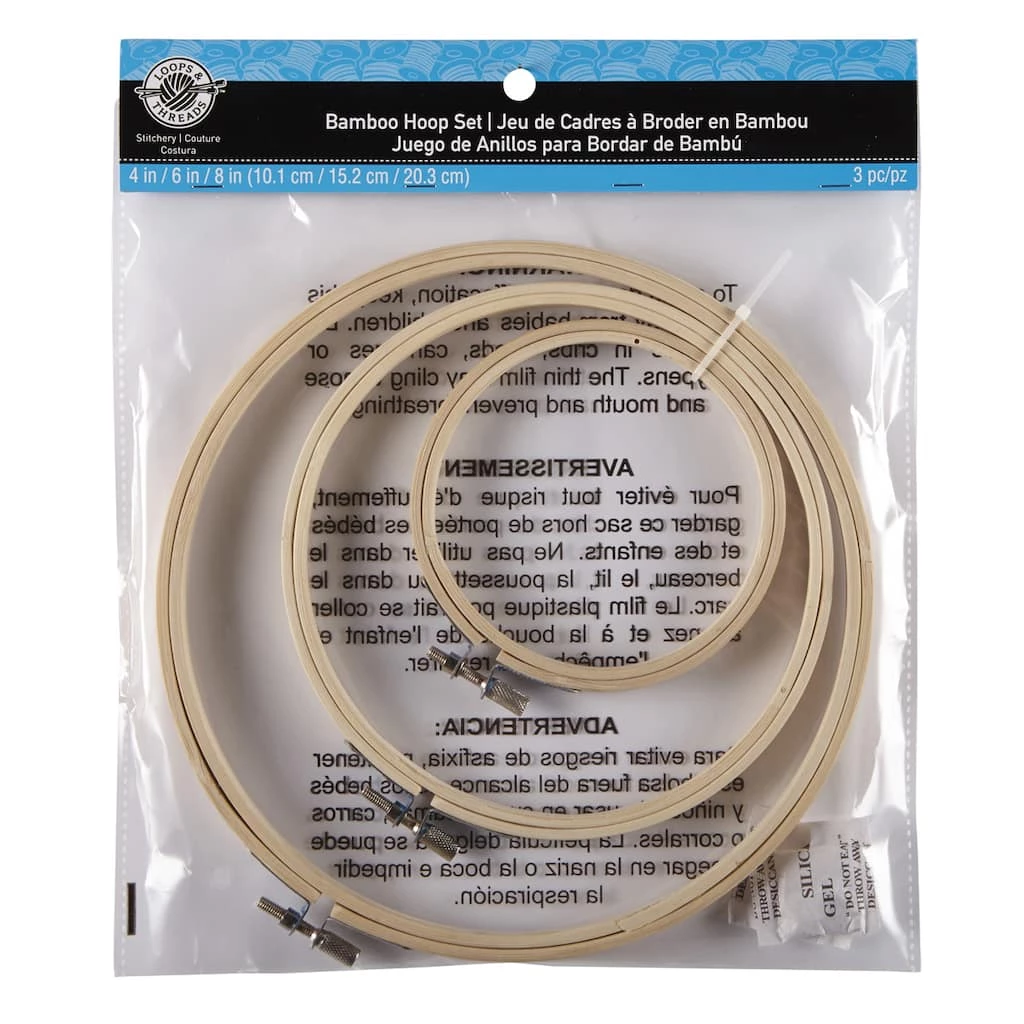 Great for crafts from needle arts to fabric painting. This high quality bamboo hoop set includes the most popular sizes.