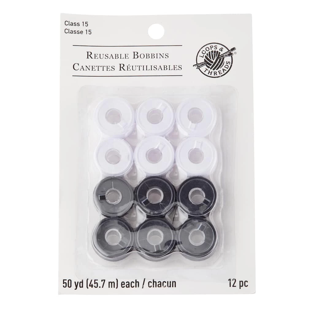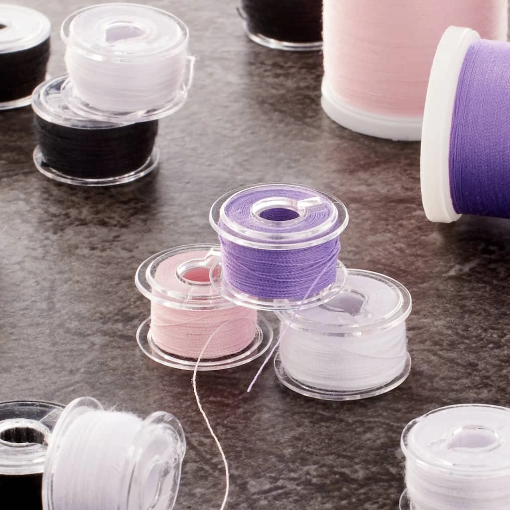 These refillable bobbins are pre-filled with 50 yards of colorfast thread. You can use these bobbins in your sewing machine or for hand sewing.